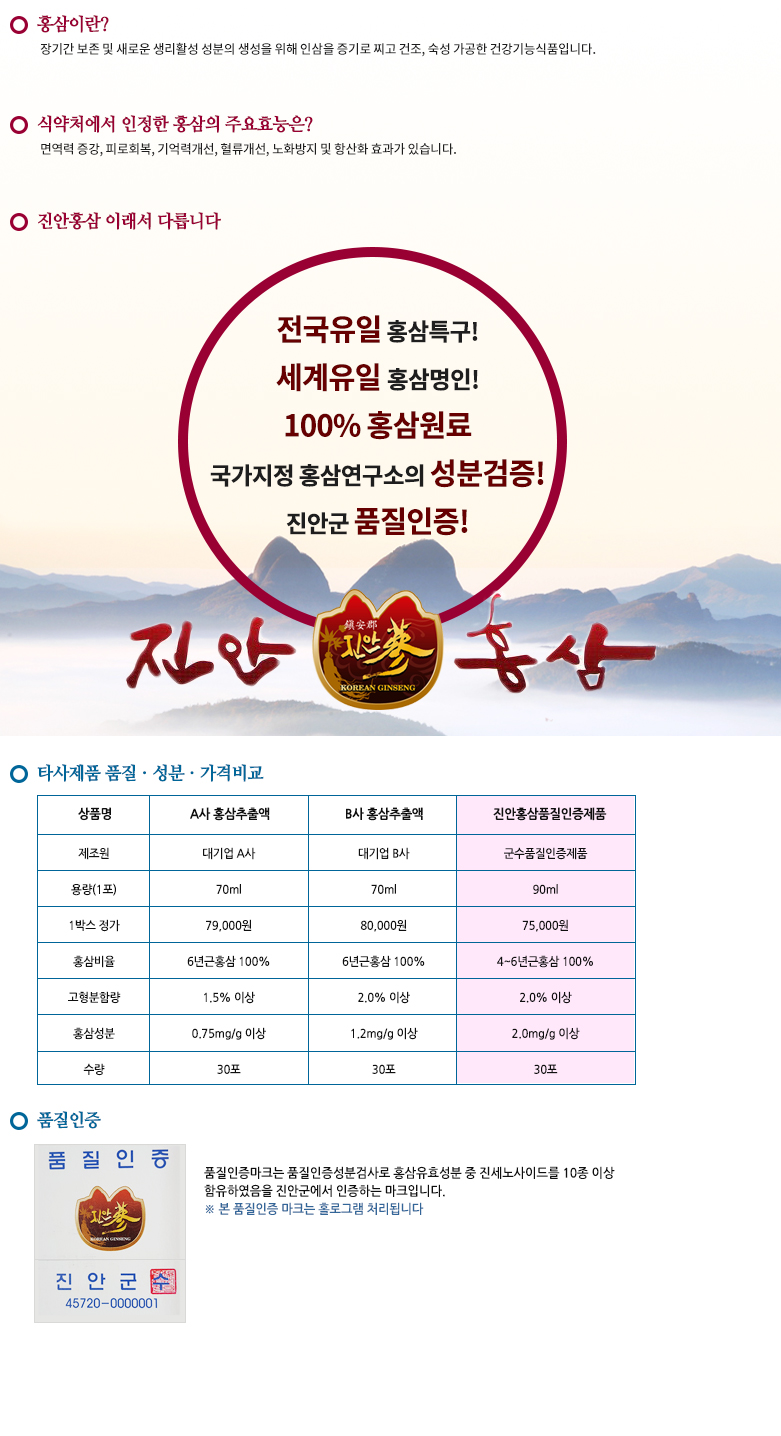+ 홍삼가공품 품질인증제란 + 진안홈삼